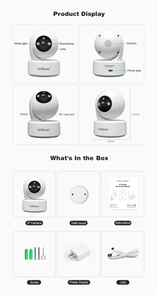 دوربین SH064 مجهز به میکروفون و اسپیکر داخلی با پروتکل صوتی PCM است که امکان ارتباط دوطرفه با صدای شفاف را فراهم میکند؛ از مکالمه با اعضای خانواده تا ارسال هشدارهای صوتی. از نظر اتصالات، پشتیبانی از Wi-Fi دو بانده (2.4G و 5G) پایداری و سرعت بالایی را در انتقال دادهها تضمین میکند و امکان نظارت بدون نیاز به شبکه اصلی از طریق AP Hotspot نیز فراهم است.